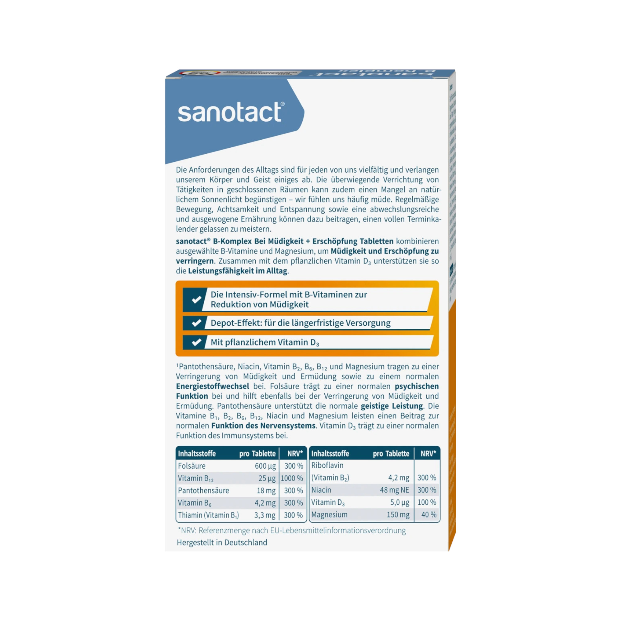 | Acide pantothénique | 18 mg | 300 % |