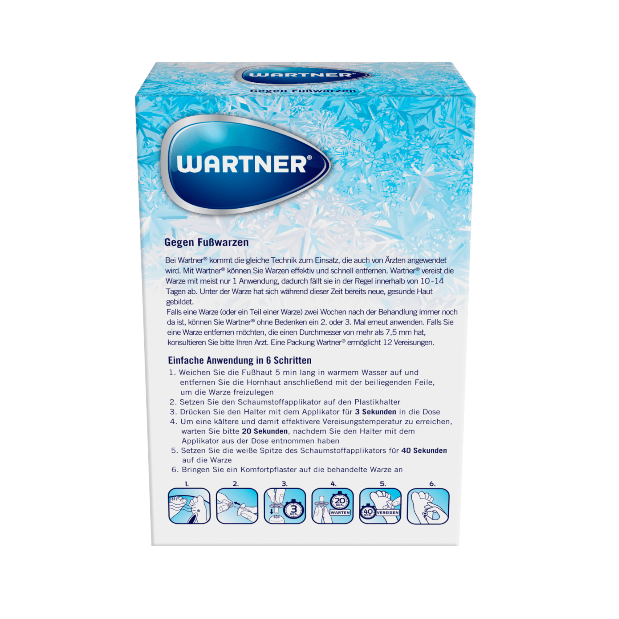 Rapide, facile et efficace : Avec Wartner contre les verrues des pieds, vous pouvez éliminer les verrues de manière efficace et rapide. Wartner gèle la verrue en une seule application, la faisant tomber généralement en 10 à 14 jours. Pendant ce temps, une nouvelle peau saine s’est formée sous la verrue. Convient à toute la famille y compris les enfants à partir de 4 ans.